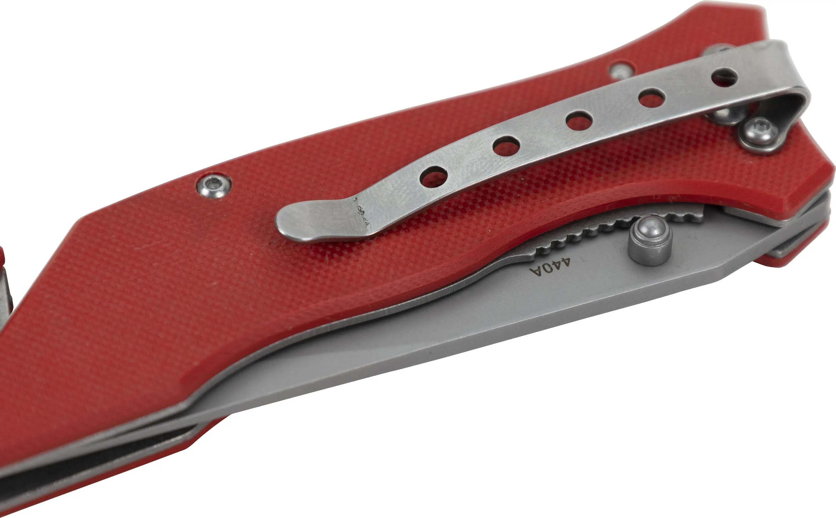 Kontrolle, während der Daumenpin das Öffnen mit nur einer Hand ermöglicht - schnell und zuverlässig, auch in stressigen Situationen. Zusätzliche Funktionen wie der integrierte Gurtschneider und der Glasbrecher machen das Messer ideal für Rettungs- und Notsituationen. Dank des stabilen Gürtelclips lässt es sich sicher am Gürtel befestigen, sodass es