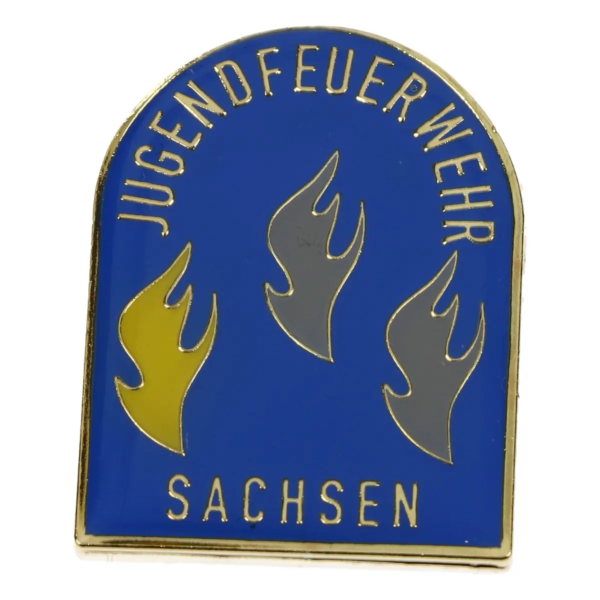 Das Abzeichen hat die Form eines Wappens mit einer stilisierten Flamme und trägt die Aufschrift „Sachsen“. Es wird auf der linken Brusttasche des Übungsanzugs getragen und symbolisiert den erfolgreichen Abschluss der ersten Ausbildungsstufe.