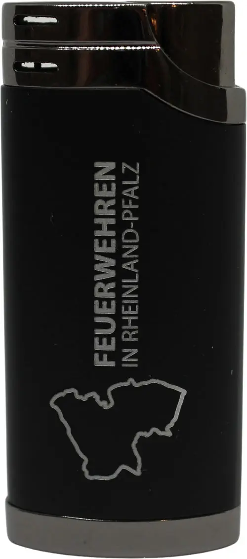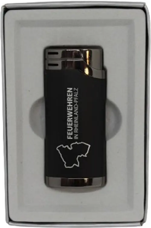 Metallfeuerzeug Rheinland-Pfalz, schwarz, Marke "Unilite", Modell "Bilbao", Format 67x29x16 mm, Soft Flame, nachfüllbar, einzeln im Karton.