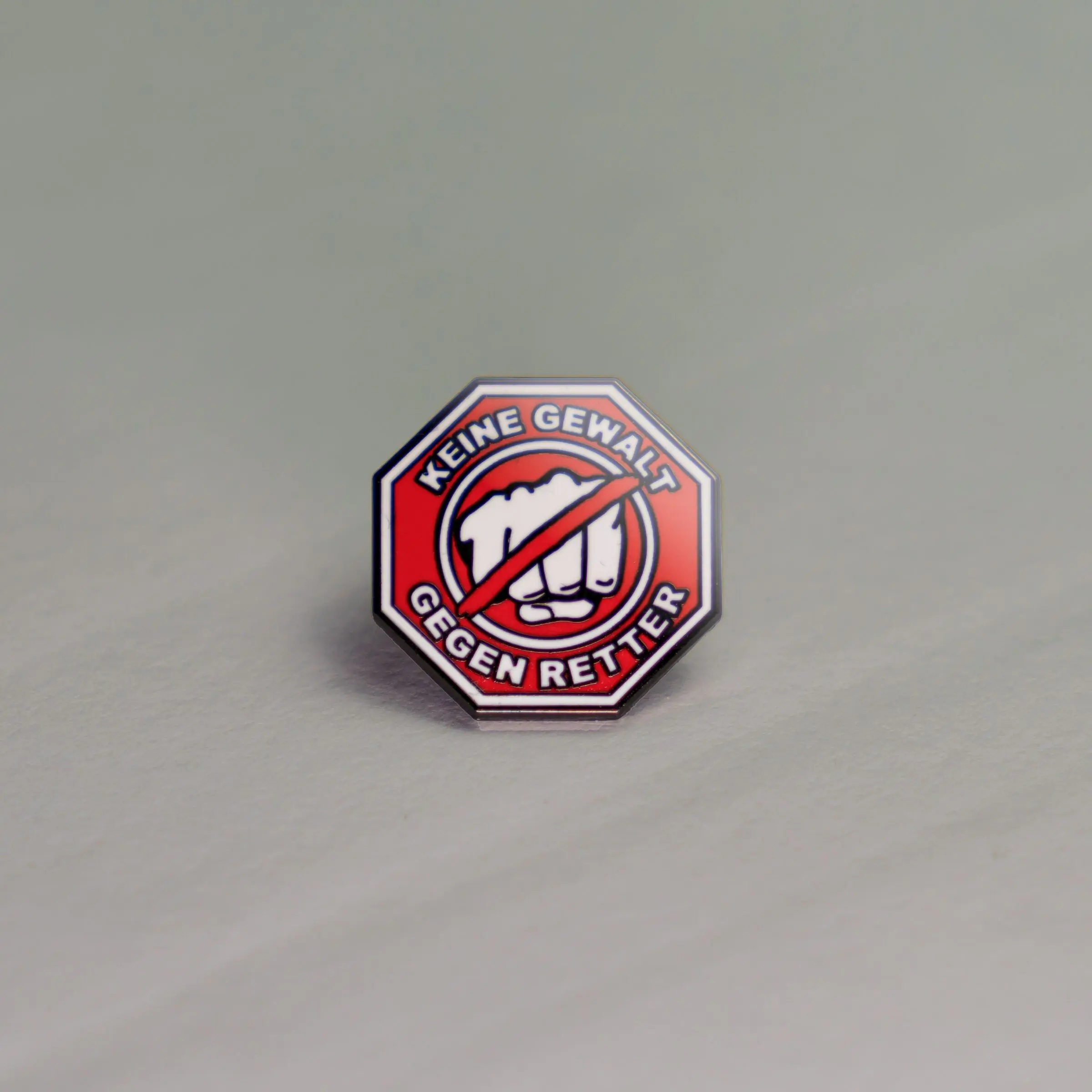Mit diesem Pin wird eine Zeichen gesetzt für Respekt und Schutz der Einsatzkräfte.
