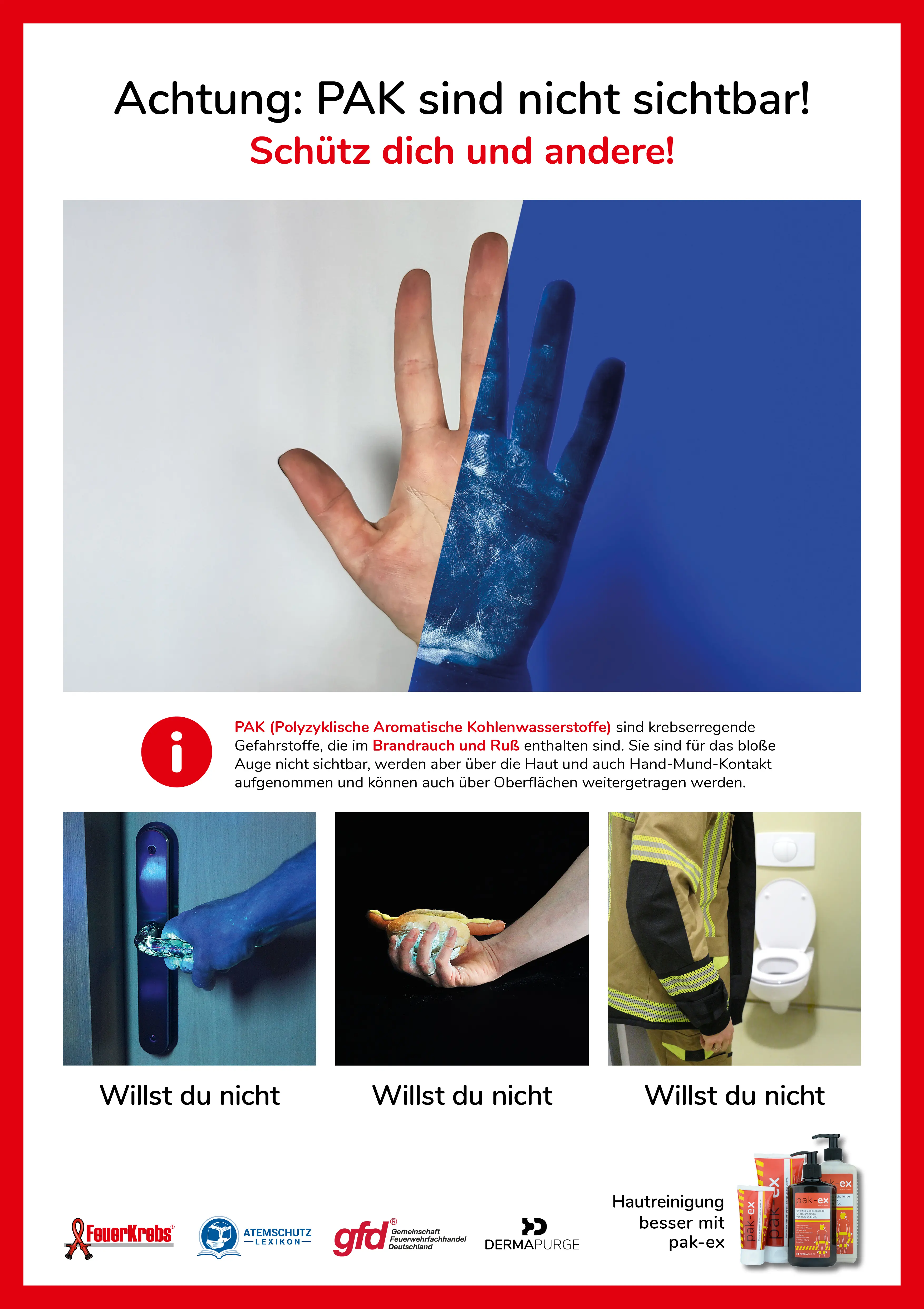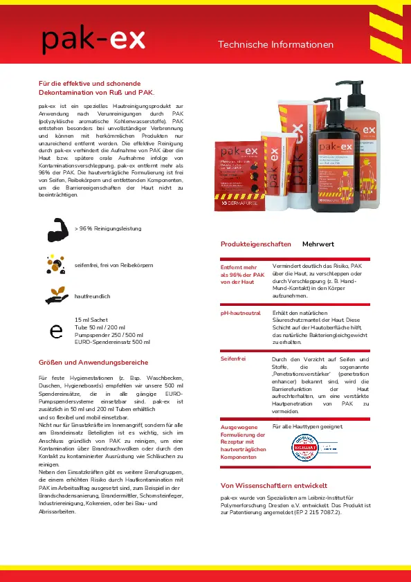 pak-ex reinigt die Haut effektiv und schonend von Ruß und PAK. Dermatologisch getestet, pH-hautneutral, täglich anwendbar, Seifenfrei, um die natürliche Hautbarriere nicht zu beeinträchtigen.