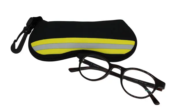 Praktisches Brillenetui aus Neopren mit Haken zum Befestigen an einer Tasche oder ähnlichem .