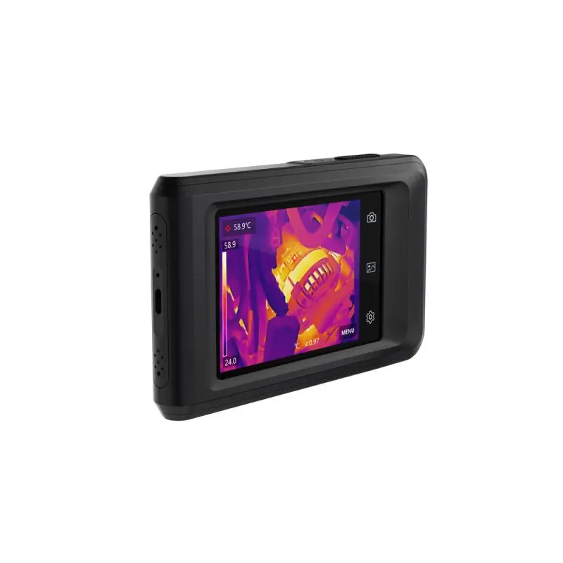 Die HIKMICRO Pocket2 Wärmebildkamera ist eine kompakte und tragbare Lösung für präzise Temperaturmessungen. Ausgestattet mit einem VOx-Detektor und einer Auflösung von 256 x 192 Pixeln bietet sie scharfe Bilder und eine hohe Empfindlichkeit. Sie ermöglicht das Umschalten zwischen verschiedenen Bildmodi und zeichnet Temperaturen von -20°C bis 400°C bei hoher Genauigkeit auf. Der 3,5-Zoll-Touchscreen, vielseitige Bildeinstellungen, ein langlebiger Akku und eine LED-Taschenlampe runden das Design für industrielle Anwendungen ab.